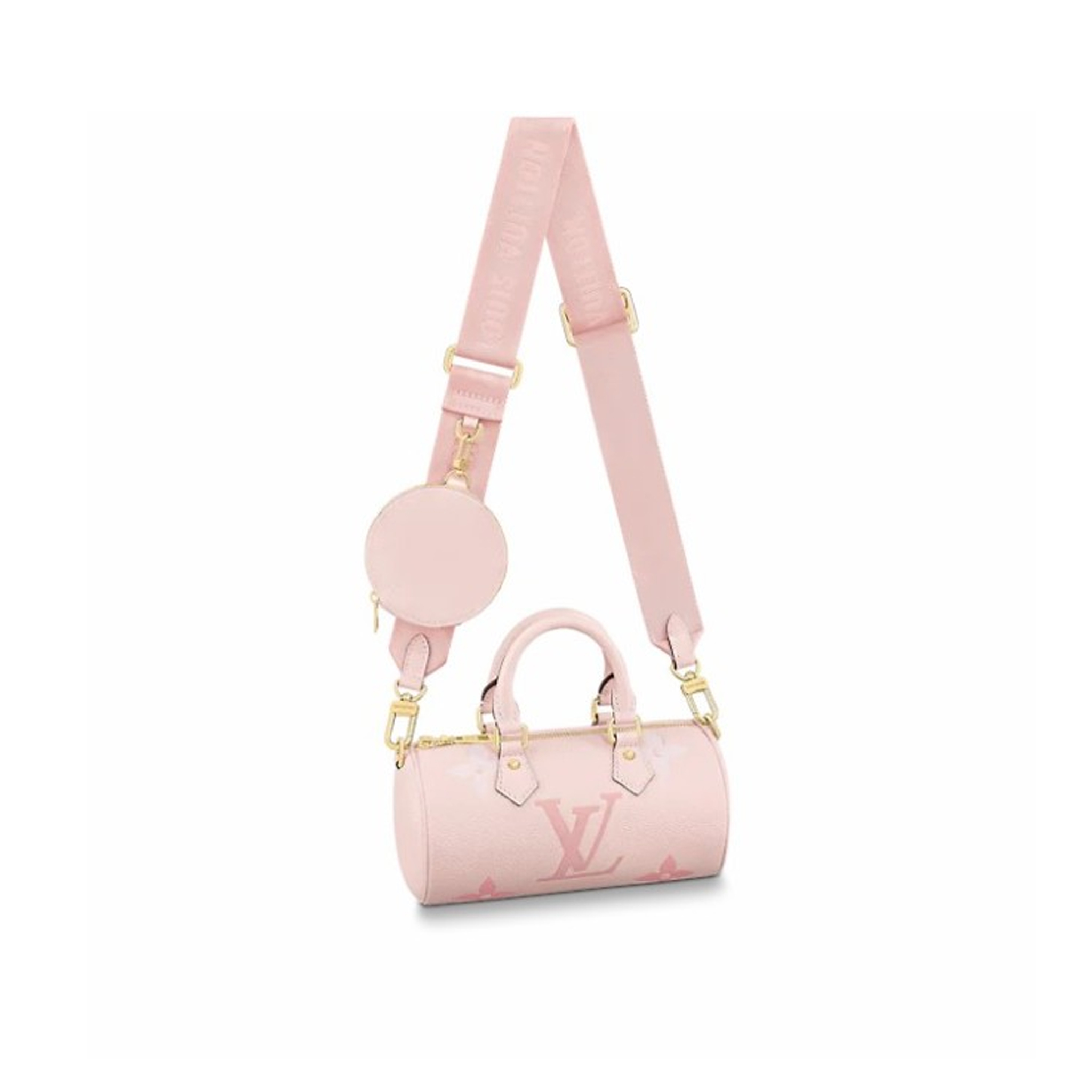 This adorable version of the historic Papillon shape, the Papillon BB carryall bag, is made from pastel Monogram Empreinte leather with a gradient Monogram print. Its iconic lines get a sporty update thanks to its detachable Louis Vuitton jacquard strap. The removable round coin purse brings a playful touch.