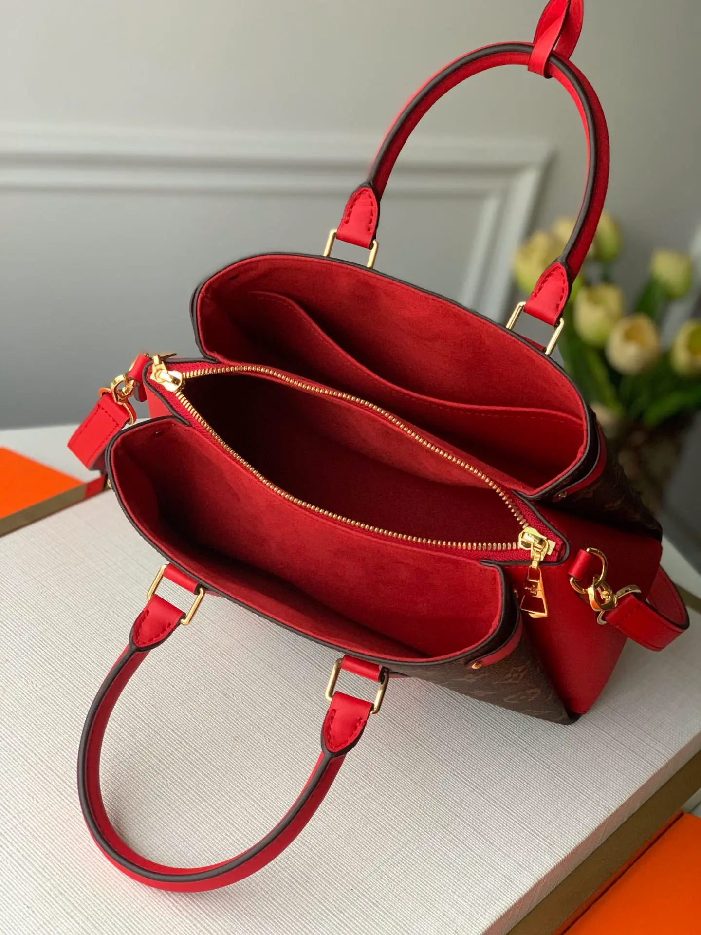 Home/Louis Vuitton Handbags/Women/LOUIS VUITTON SOUFFLOT BB HANDBAG MONOGRAM COATED CANVAS CERISE RED M44818
