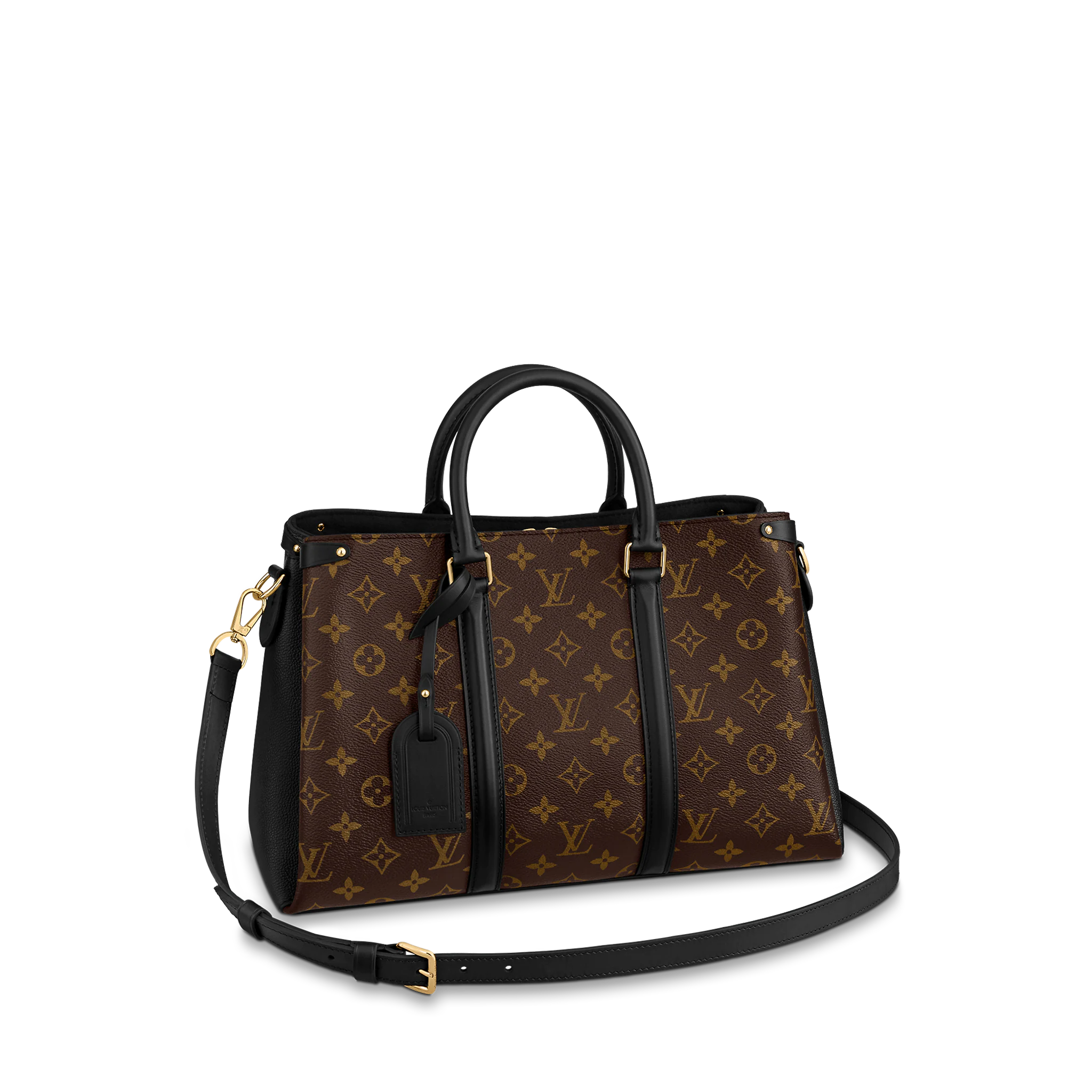 An elegant choice for city wear, this edition of the Soufflot MM in supple Monogram canvas is richly accented with colored leather gussets and trim. The lateral bands and name tag nod to the Keepall, a House icon since 1934. Articulated top handles and a long, adjustable strap afford multiple carry options, while the coordinated colored lining adds refinement.