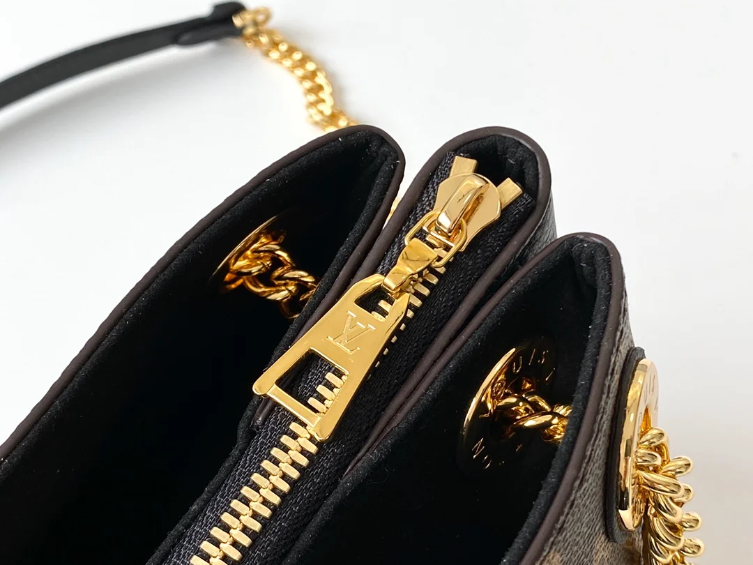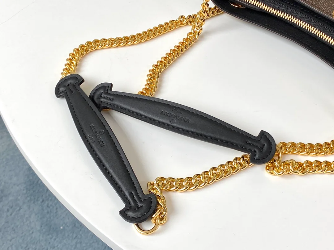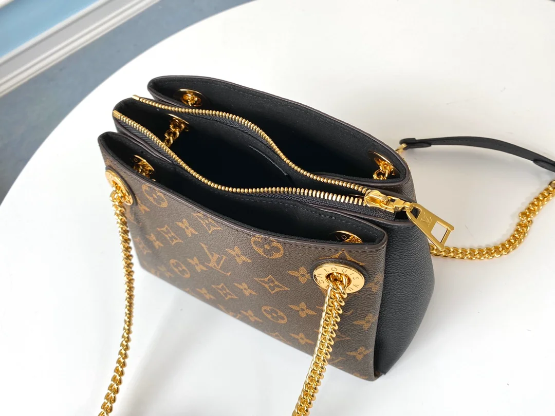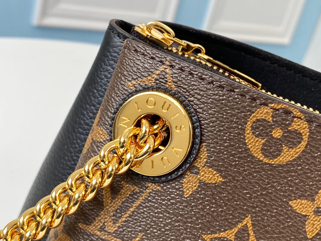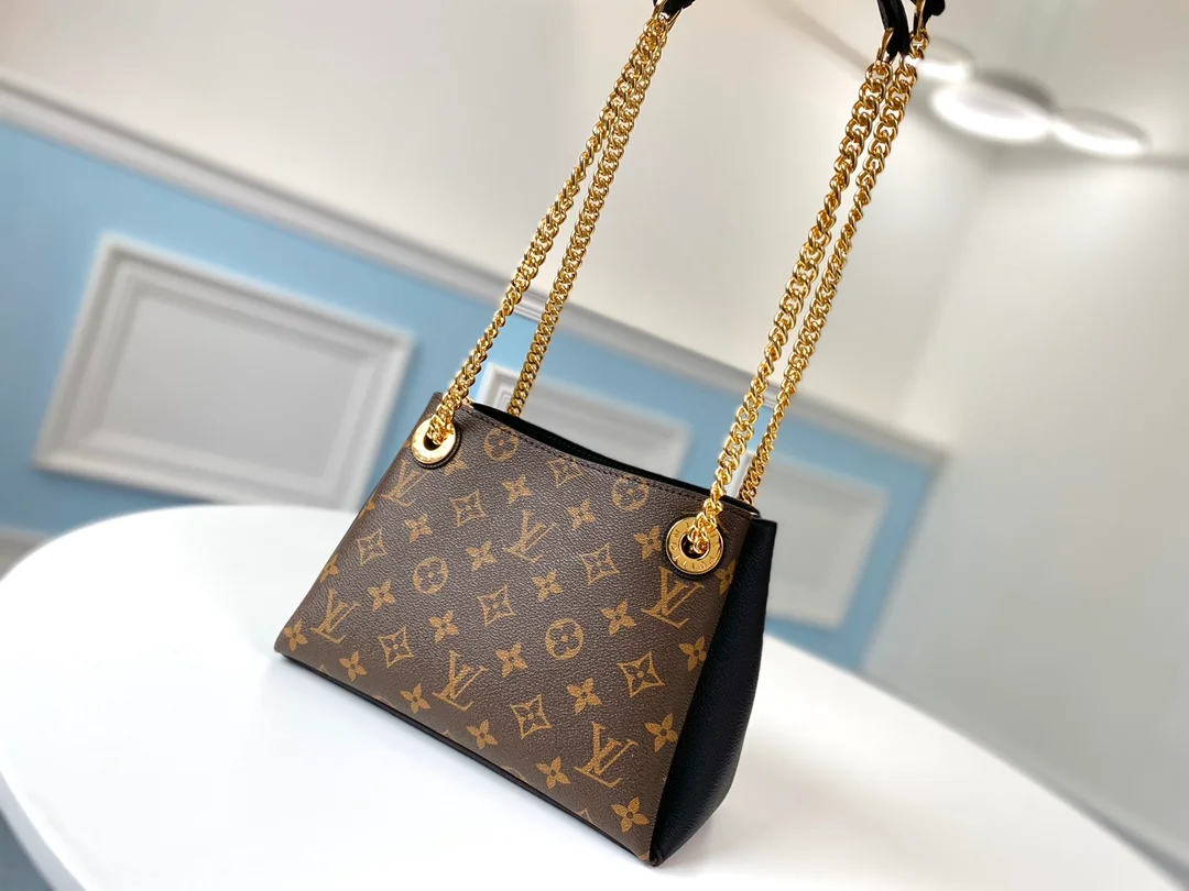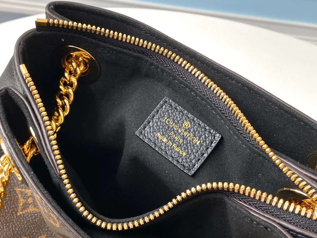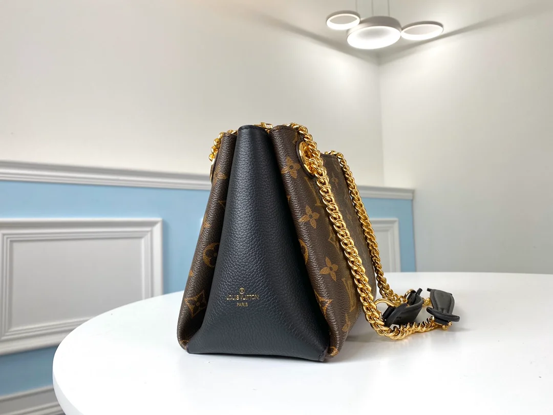 The Surène BB handbag in Monogram canvas and grained calf leather with a gold-color sliding chain is Louis Vuitton’s new chain bag. Its sleek shape is enlivened with gold-color hardware and the generous use of leather trim. The perfect casual-chic bag, it is lightweight, versatile, body-friendly and easy to wear.