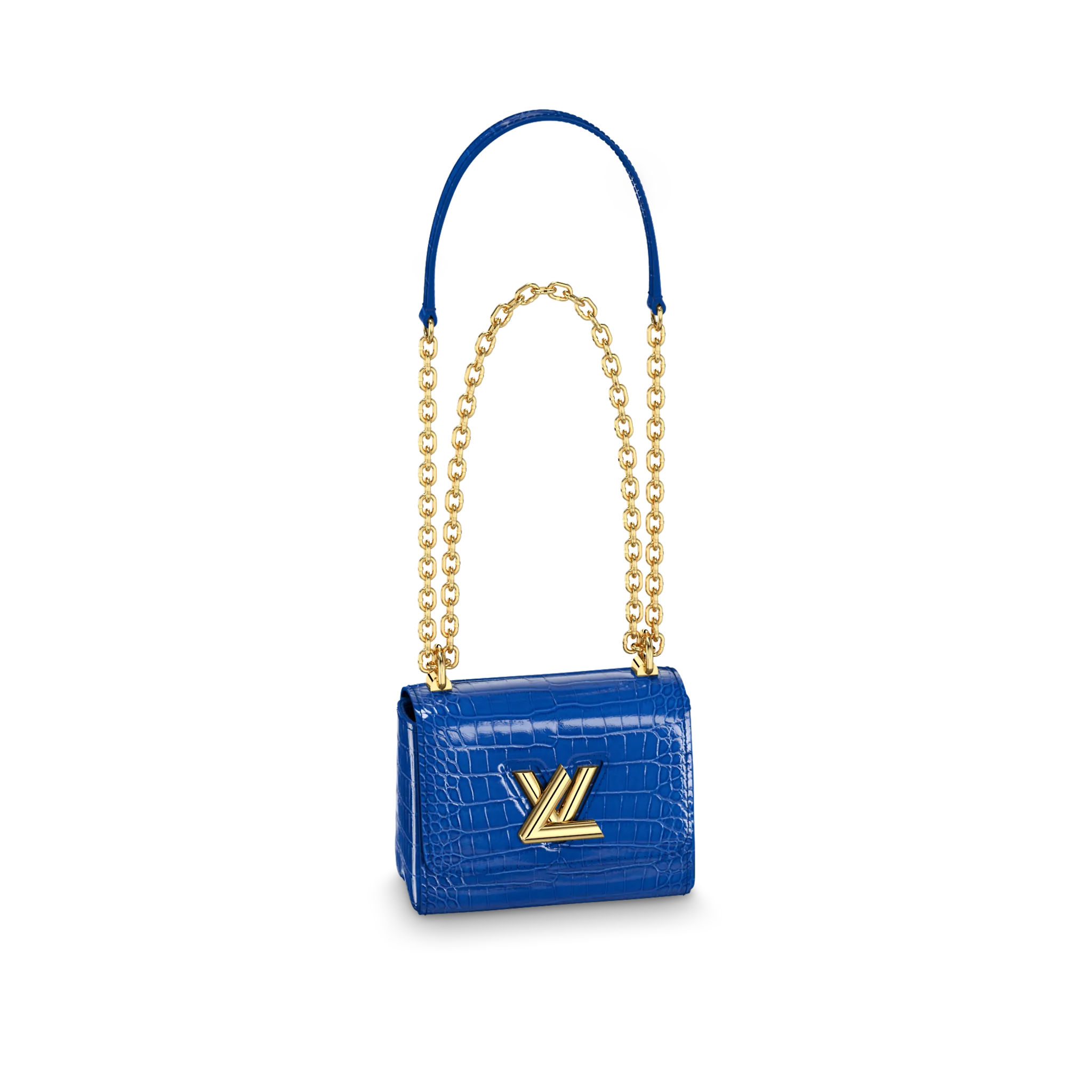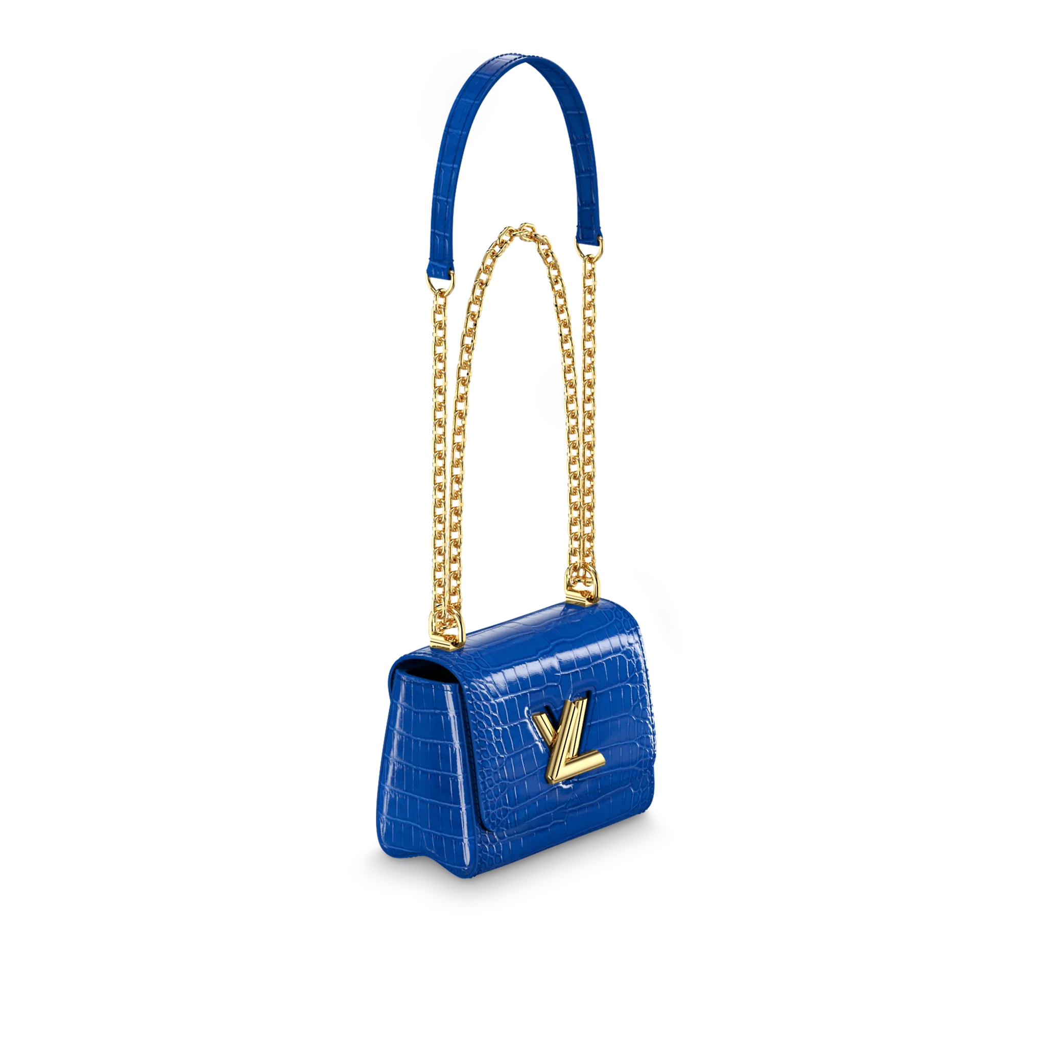 Buy it nowThe Twist Mini handbag in brilliant crocodilian leather boasts all the instantly recognizable details of the classic Twist – such as the LV twist-lock and nautical chain – but in a smaller size perfect for evening use. This adorable little bag can be worn over the shoulder or cross-body thanks to its sliding chain.