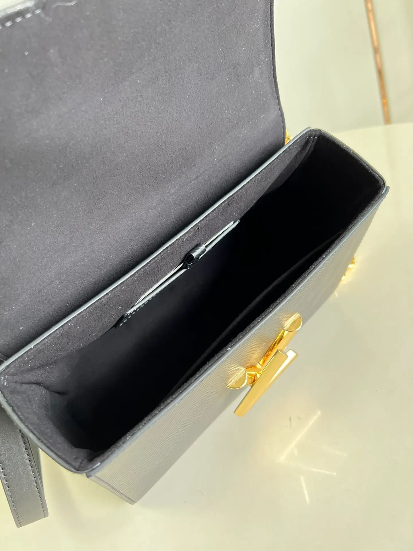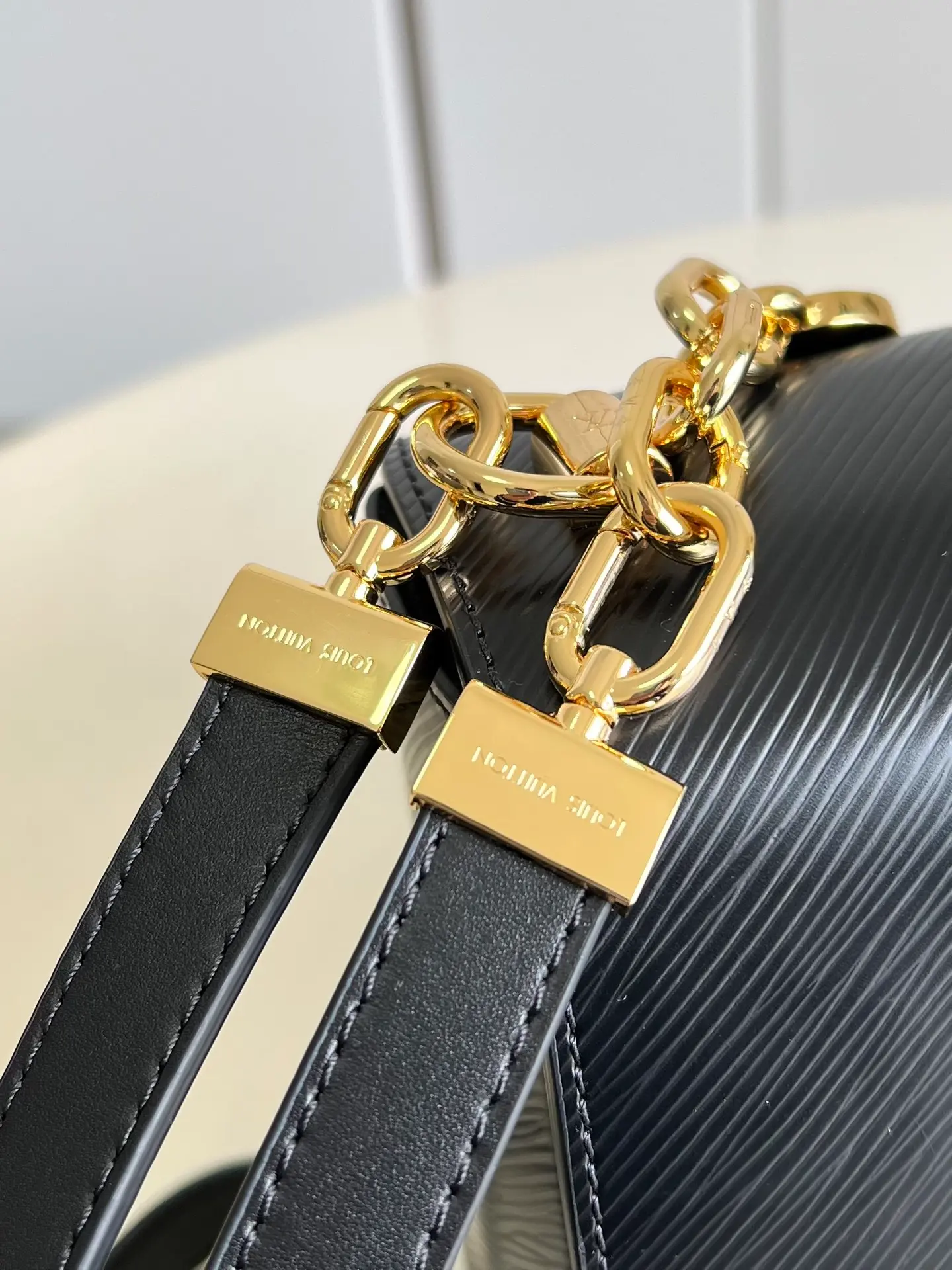 Crafted from the House’s emblematic Epi leather, the Twist MM chain bag features the now-iconic LV Twist lock, a sculptural signature in gleaming golden metal. Unexpectedly roomy thanks to the cleverly designed “wave” base, this beautifully made bag is a fashionable day-to-evening companion. The sliding chain strap can be doubled for shoulder carry or lengthened for cross-body wear. A New Classic of the House, the Twist bag was introduced at the 2015 Cruise show.