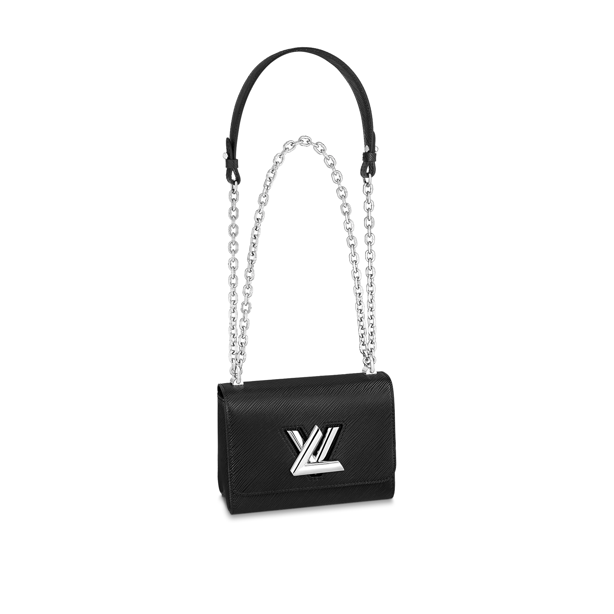 This Twist PM chain bag in grained Epi leather is accented with the now-iconic LV Twist lock, a sculptural signature in silvery polished metal. Compact but surprisingly roomy thanks to the cleverly designed “wave” base, this beautifully crafted piece is a fashionable day-to-evening companion. The sliding chain strap can be doubled for shoulder carry or lengthened for cross-body wear. A New Classic of the House, the Twist bag was introduced at the 2015 Cruise show.
