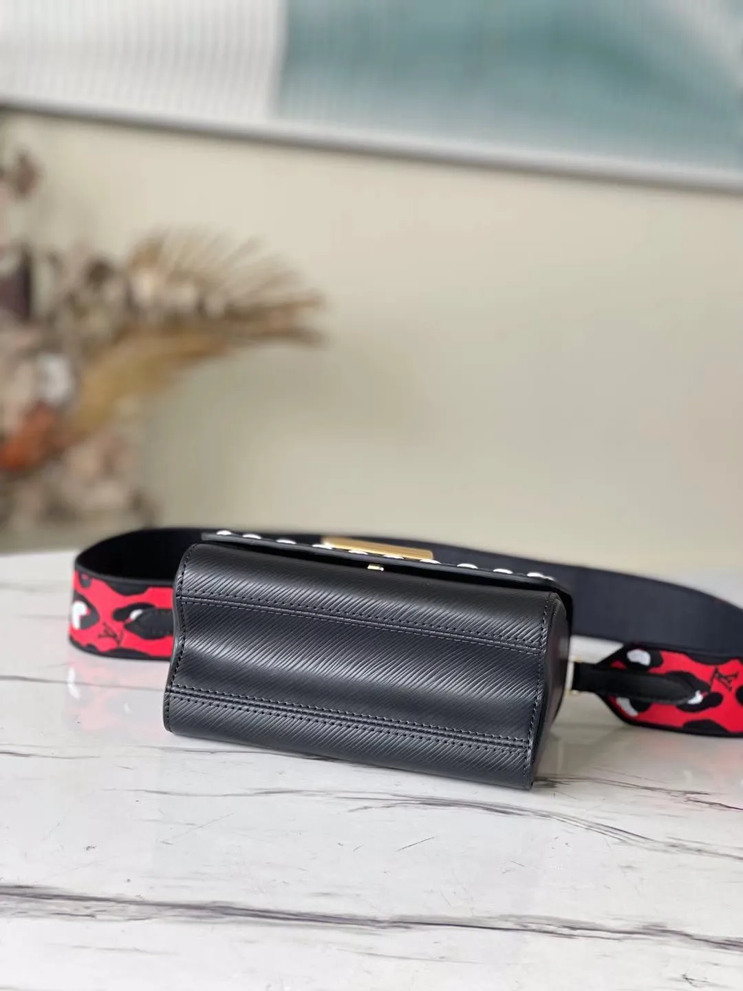 Created for the Wild at Heart seasonal capsule, this sporty-chic Twist PM handbag is made from grained Epi leather with a refined stitching detail on the flap. Ideal for short cross-body wear, the bag’s detachable embroidered textile strap reveals a Louis Vuitton signature on one side and a bold leopard print on the other, for a fashion-forward attitude.