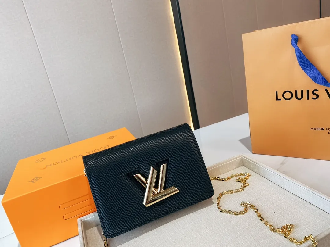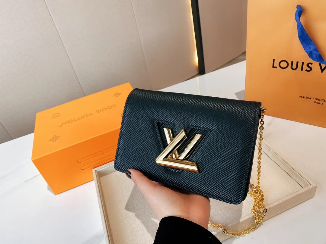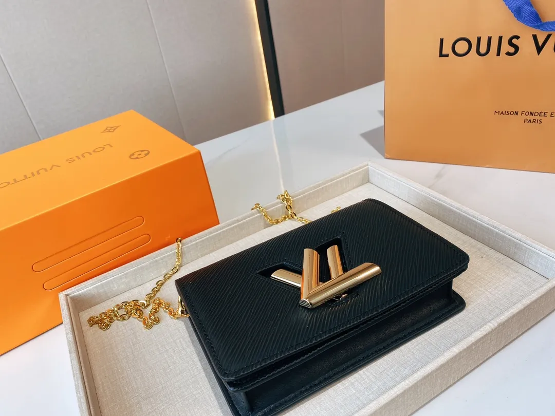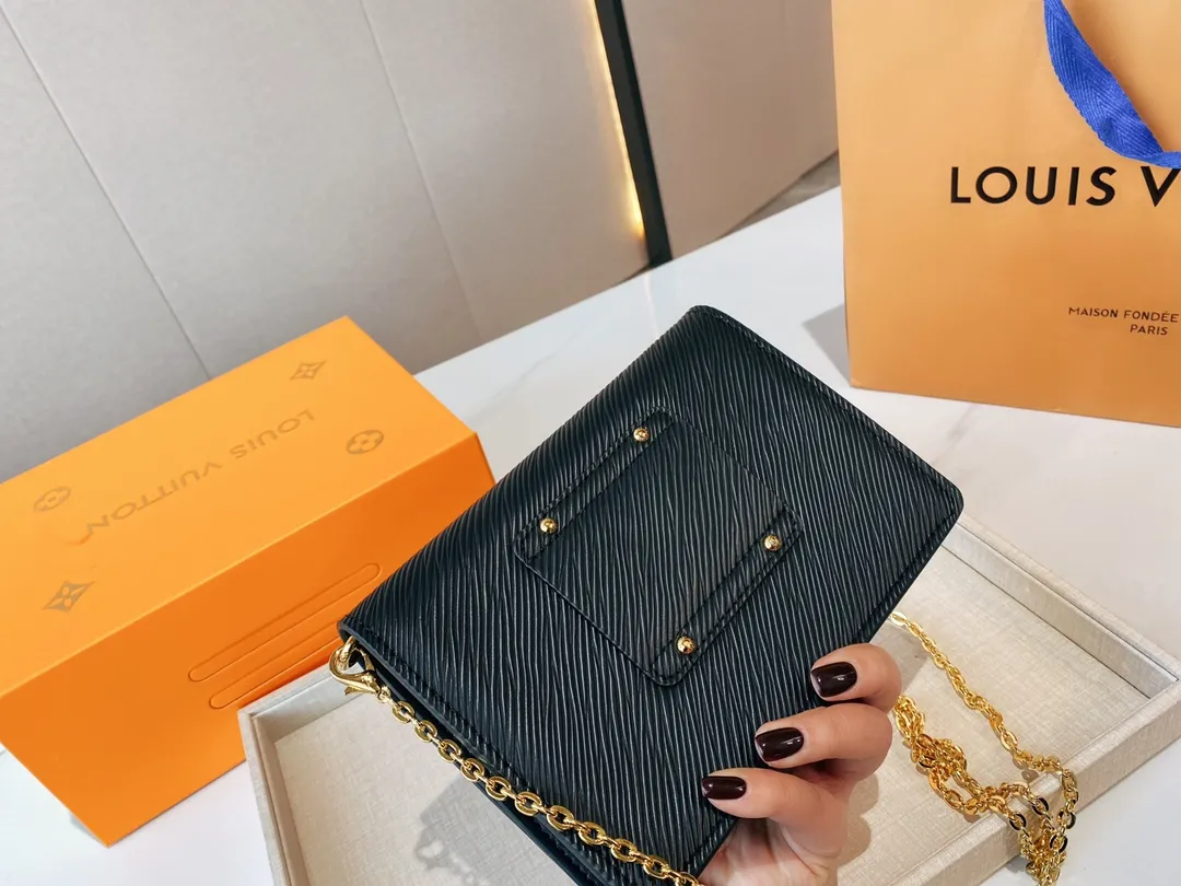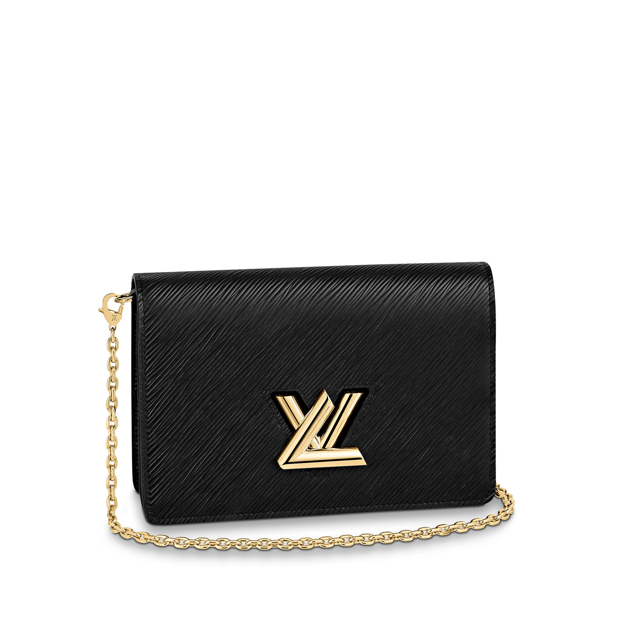 The Twist belt chain wallet is crafted from black Epi leather, complemented by gold-tone hardware. This modern design can be carried as a clutch, on the shoulder, or – thanks to a loop at the back – on a belt. It holds essentials including a smartphone and closes securely with a turn of the LV Twist lock.