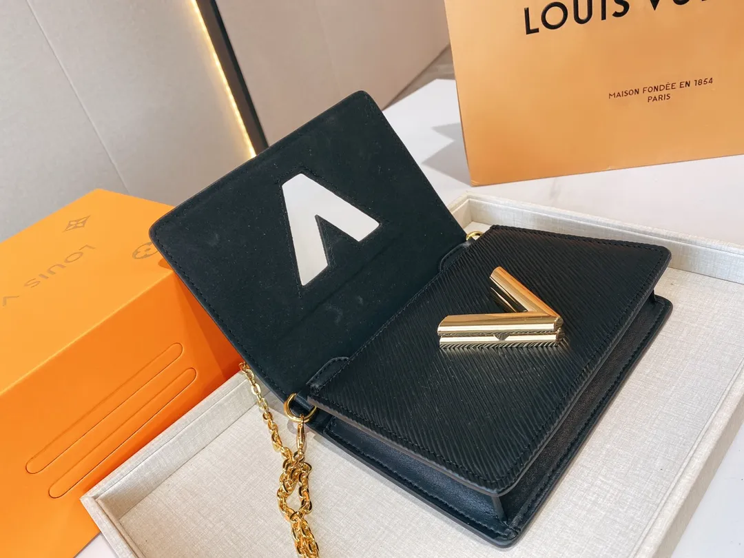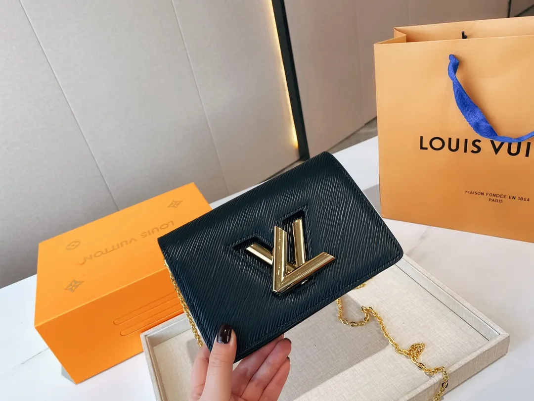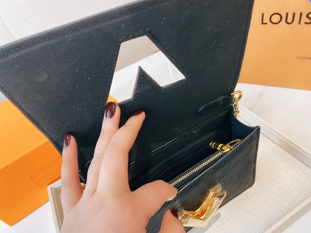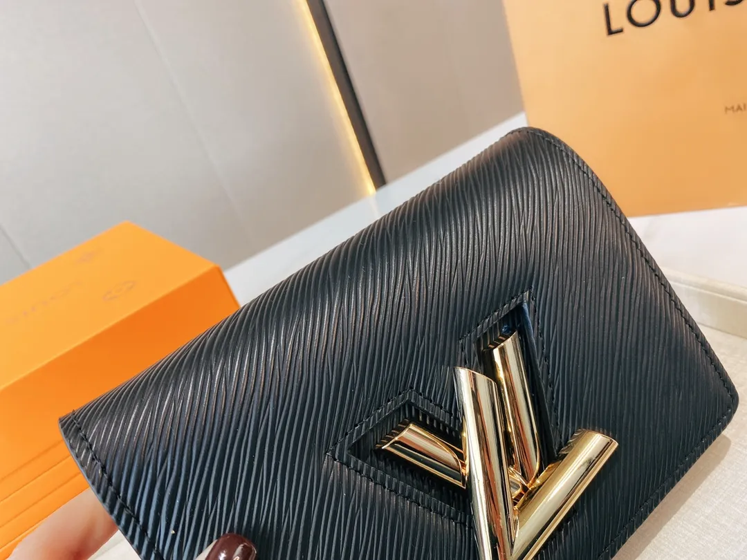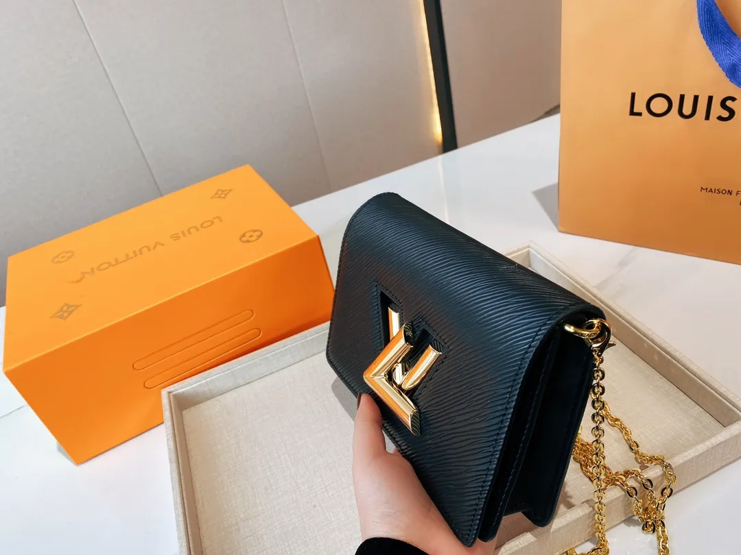 The Twist belt chain wallet is crafted from black Epi leather, complemented by gold-tone hardware. This modern design can be carried as a clutch, on the shoulder, or – thanks to a loop at the back – on a belt. It holds essentials including a smartphone and closes securely with a turn of the LV Twist lock.