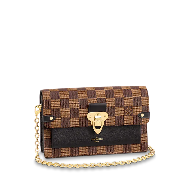 The Vavin chain wallet combines Louis Vuitton’s iconic Damier canvas with colored leather in a smart design that works for day and evening. Its flap, secured with a clasp inspired by the historic trunks, conceals a front pocket which is ideal for a smartphone. Its removable chain enables it to be carried in several different ways.