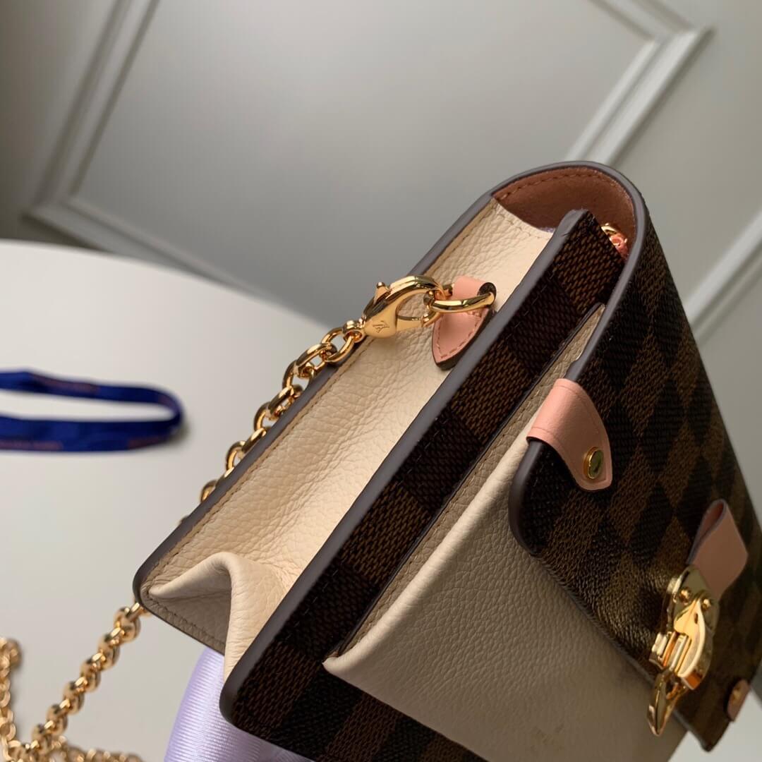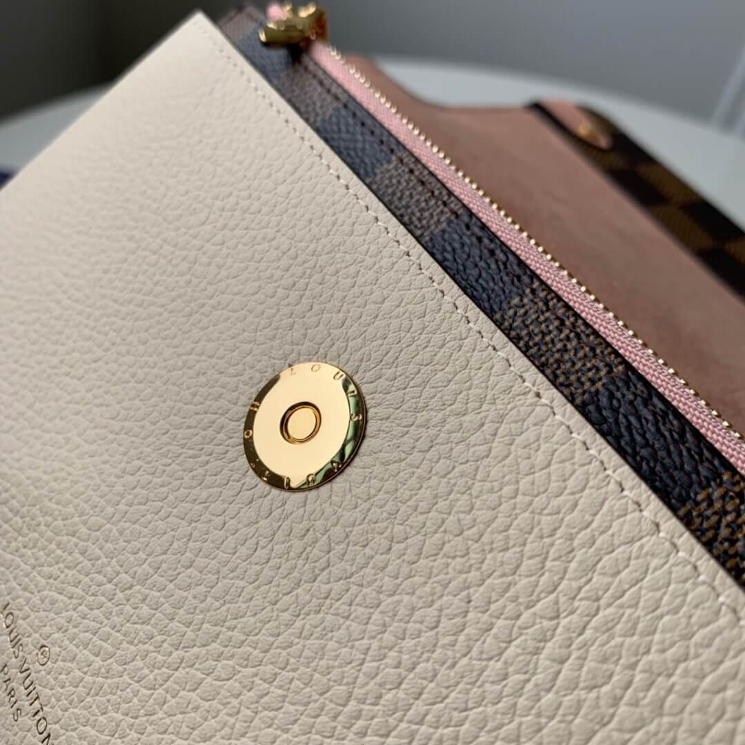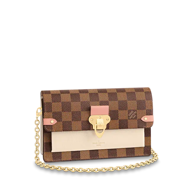 The Vavin chain wallet combines Louis Vuitton’s iconic Damier canvas with colored leather in a smart design that works for day and evening. Its flap, secured with a clasp inspired by the historic trunks, conceals a front pocket which is ideal for a smartphone. Its removable chain enables it to be carried in several different ways.