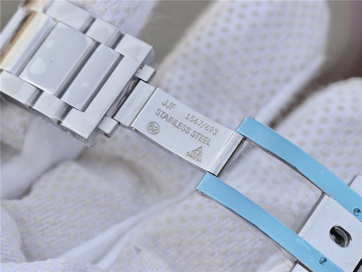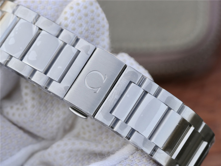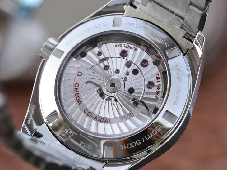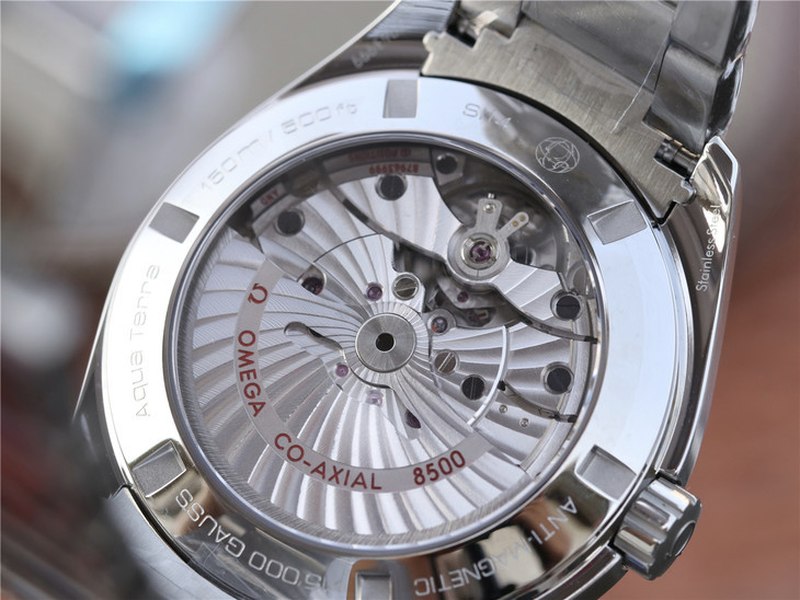 Buy it nowThis classic yet robust timepiece represents a tribute to OMEGA’s rich maritime heritage. The dramatic and easily-recognisable dial design of the OMEGA Seamaster Aqua Terra 150M collection recalls the wooden decks of luxury sailboats. This model features a lacquered silvery dial decorated with the Teak Concept pattern and a date window at 3 o’clock. A scratch-resistant sapphire crystal protects this unique dial. The stainless steel 41.5 mm case is presented on a stainless steel bracelet. This certified chronometer is powered by the OMEGA Master Co-Axial calibre 8500 which is resistant to magnetic fields greater than 15,000 gauss and can be seen through the transparent caseback