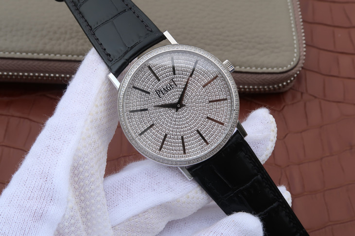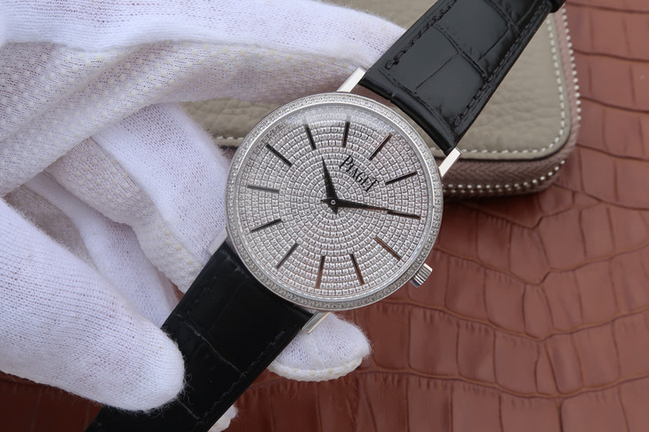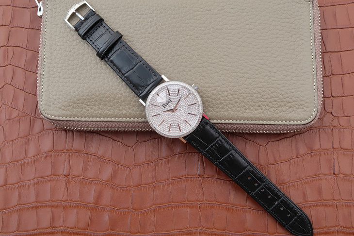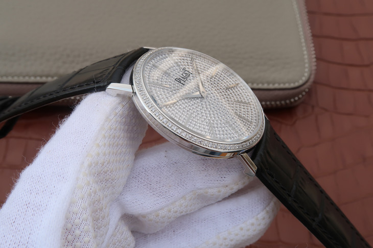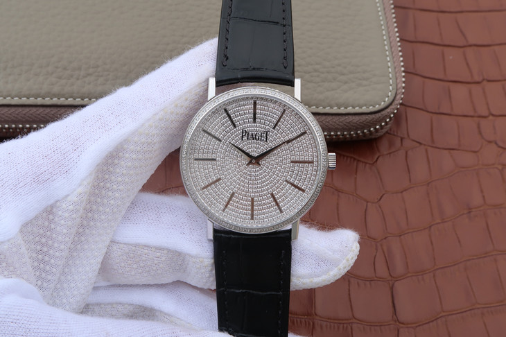 The Piaget Altiplano 38 White Gold Full Diamond reference G0A36129 has a White Gold case with a diameter of 38.00mm. Inside ticks the caliber 430P. The dial is Paved.