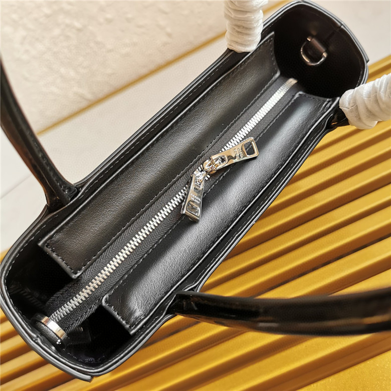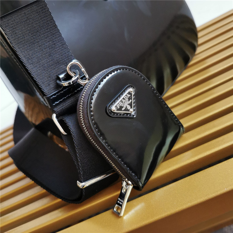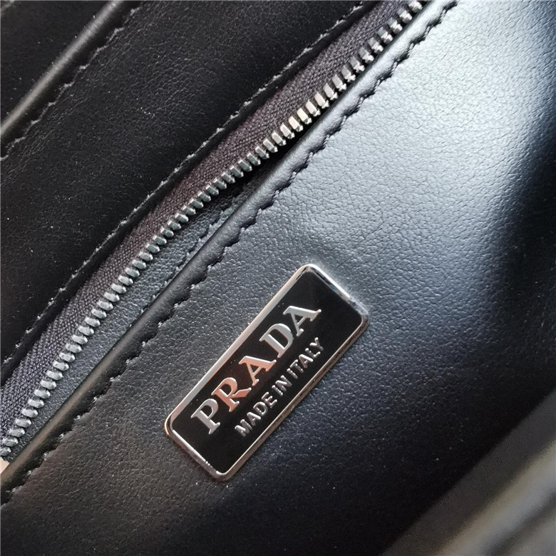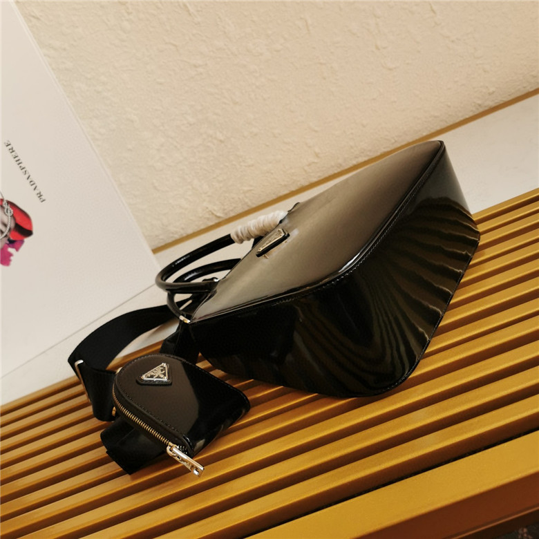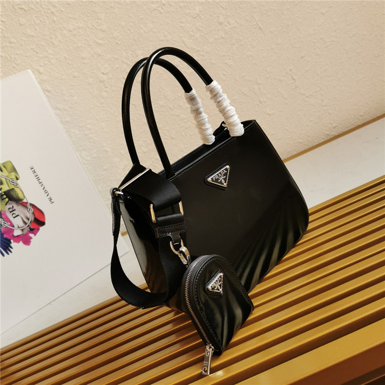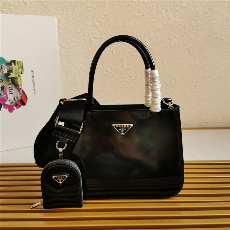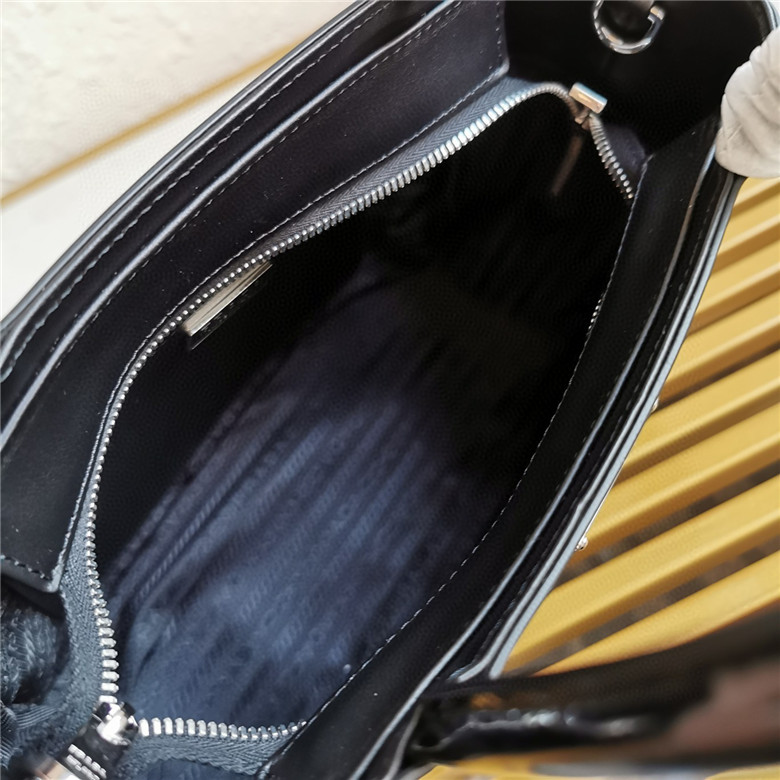The handbag is made of brushed leather, an iconic material of the brand since the 1990s that is traditionally linked to the luxury world. The triangle logo, which appeared for the first time on trunks designed by Mario Prada, decorates the front of this contemporary design completed with a removable leather pouch. The accessory with a double handle and detachable shoulder strap can be worn in different ways.