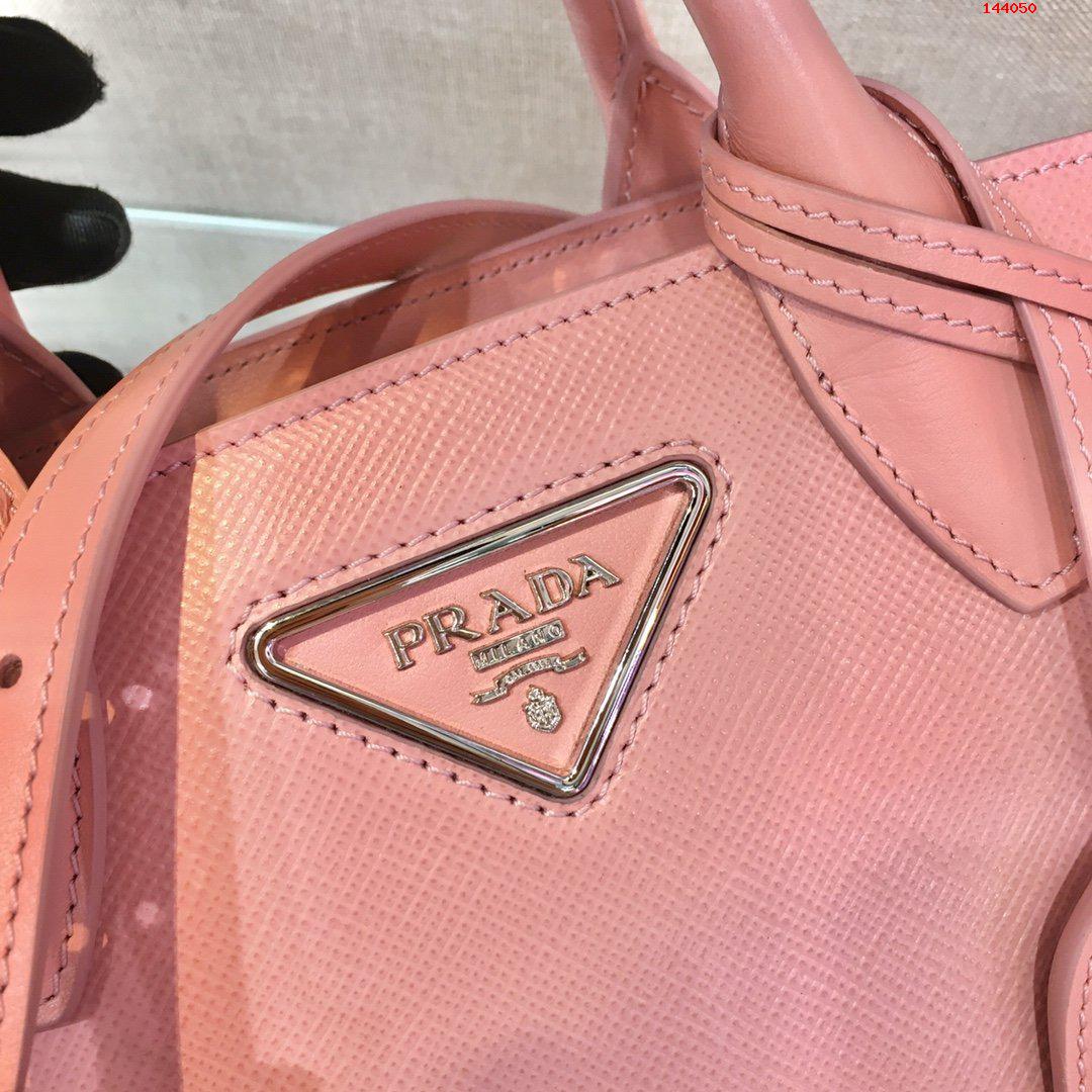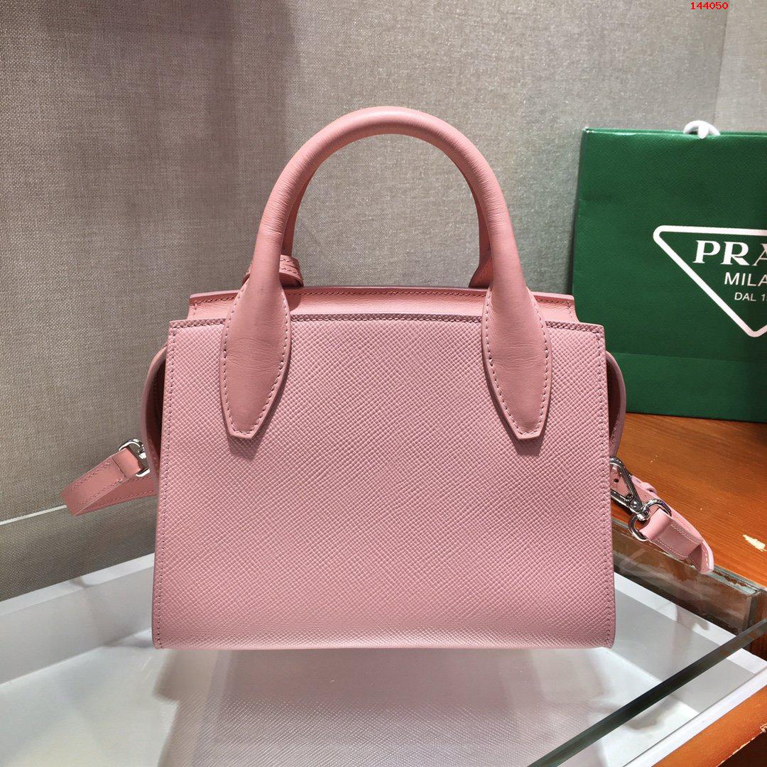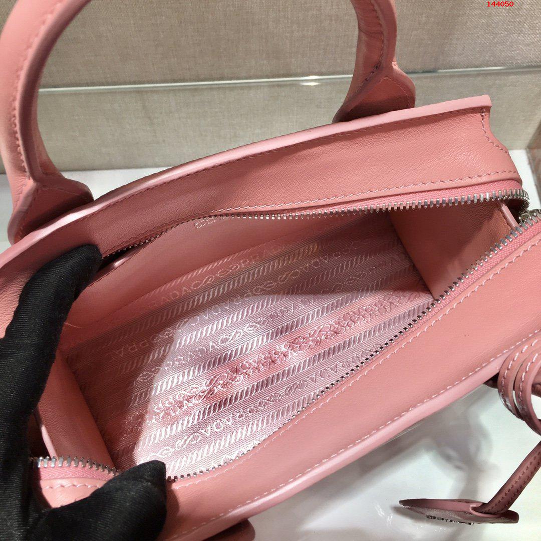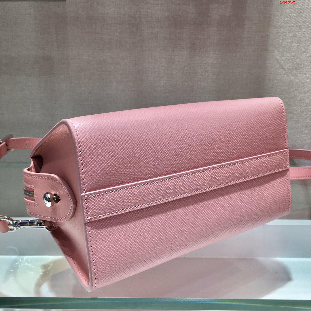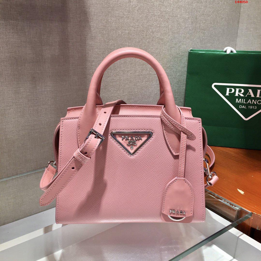 This Saffiano leather handbag with structured silhouette stands out for its sophisticated details that embellish it. The triangle logo decorates the bag.