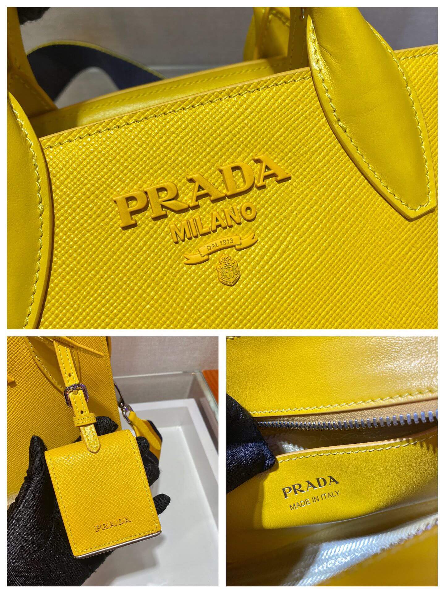- Prada logo nylon lining with patch pocket