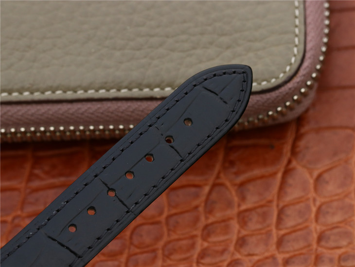 The Cellini Date model is offered in four versions: with a black or silver dial featuring a “rayon flammé de la gloire” guilloche motif, and with a 39 mm case in a choice of 18 ct white or Everose gold. It is fitted on a remborded and stitched alligator leather strap with large scales, in shiny black or brown depending on the model, and with an 18 ct gold buckle matching the gold of the case.