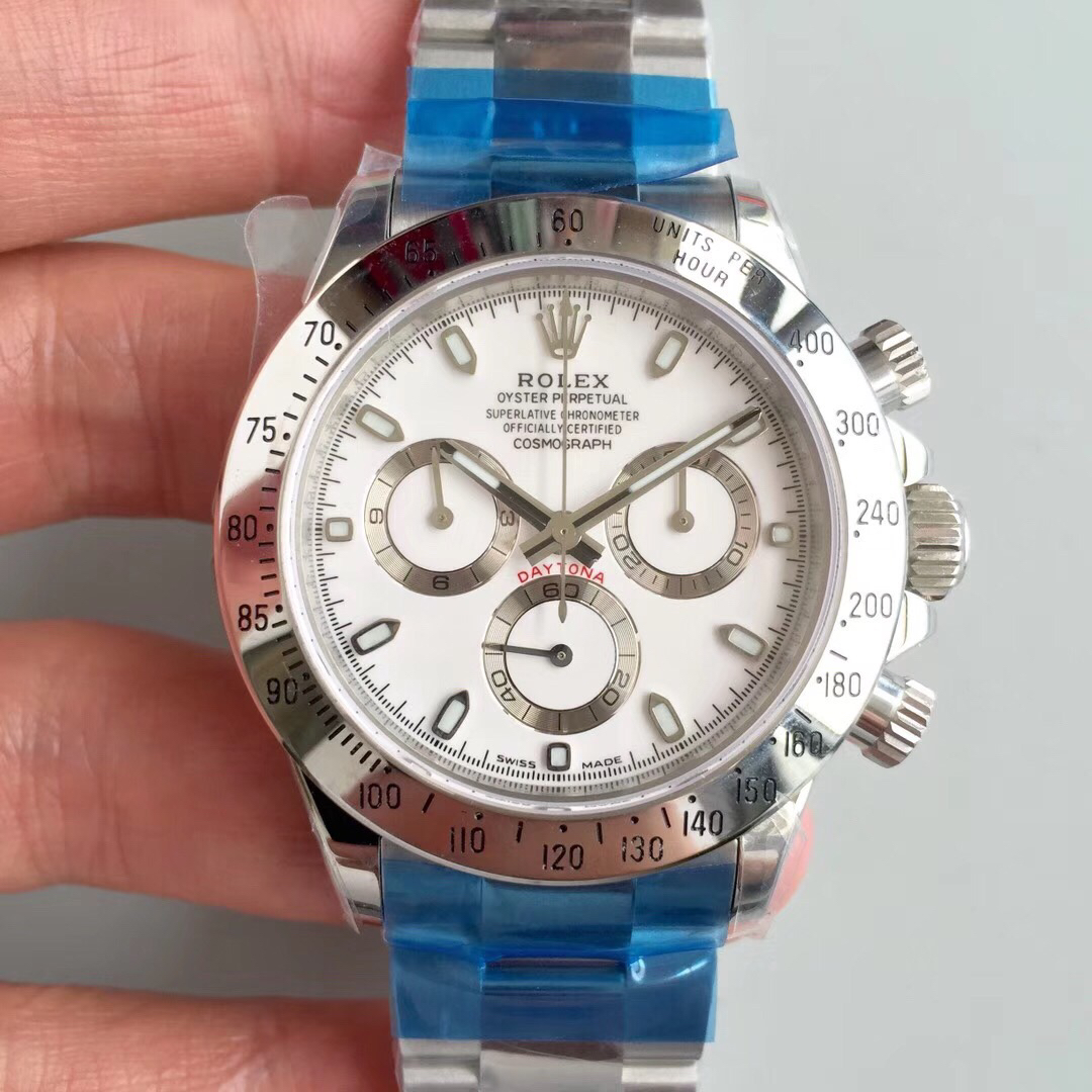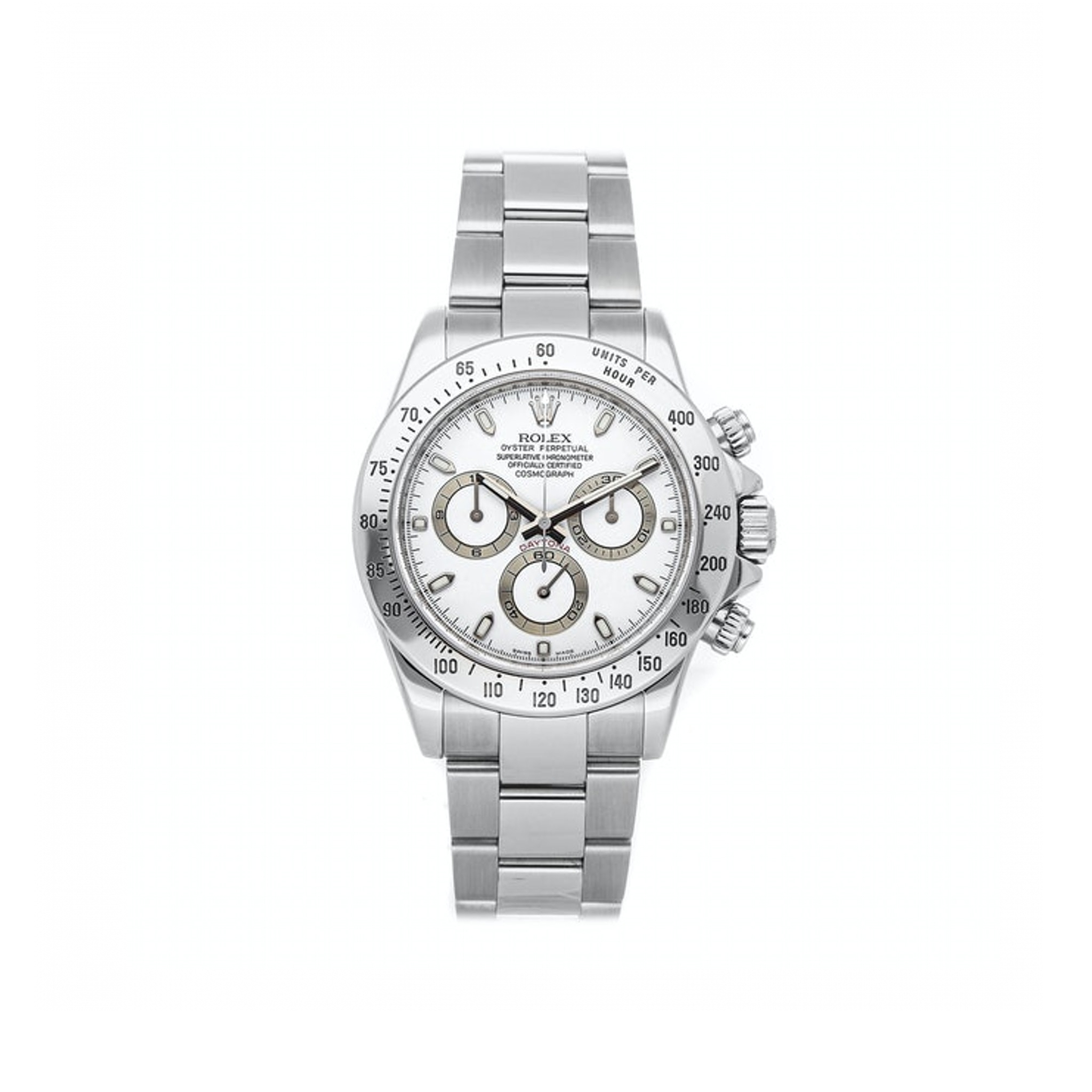 With its state-of-the-art technology, evocative heritage and sporting aura, the Oyster Perpetual Cosmograph Daytona swiftly became an iconic watch. Its dial carries in red letters the name “Daytona” – the most famous motor racing circuit in the United States. Available in 904 L steel, 18 ct gold and Rolesor versions with a variety of dials, robust Oyster bracelets as well as elegant leather straps both equipped with high security Oysterlock clasps, the Cosmograph Daytona is tailored for the track and the concert hall.