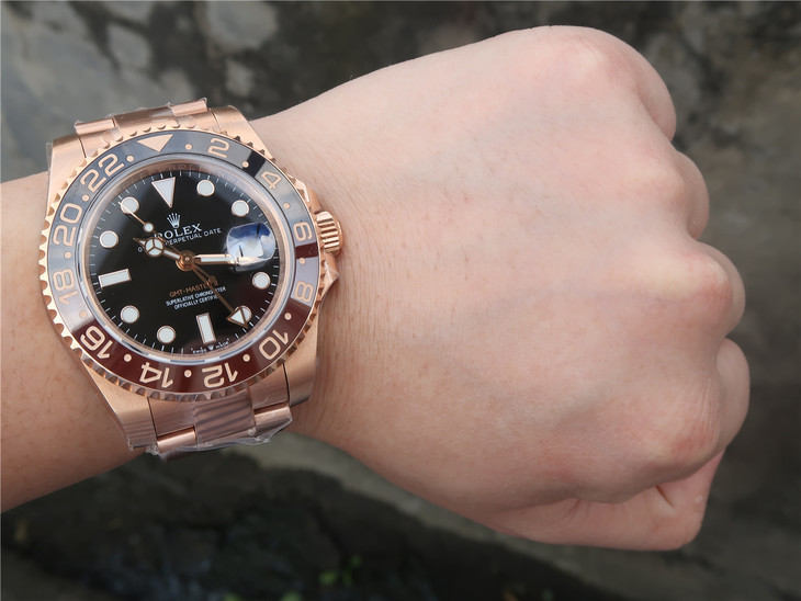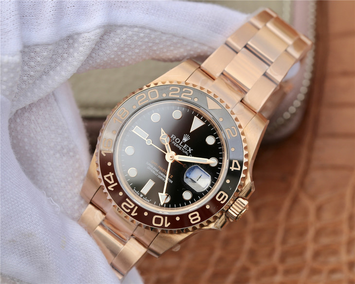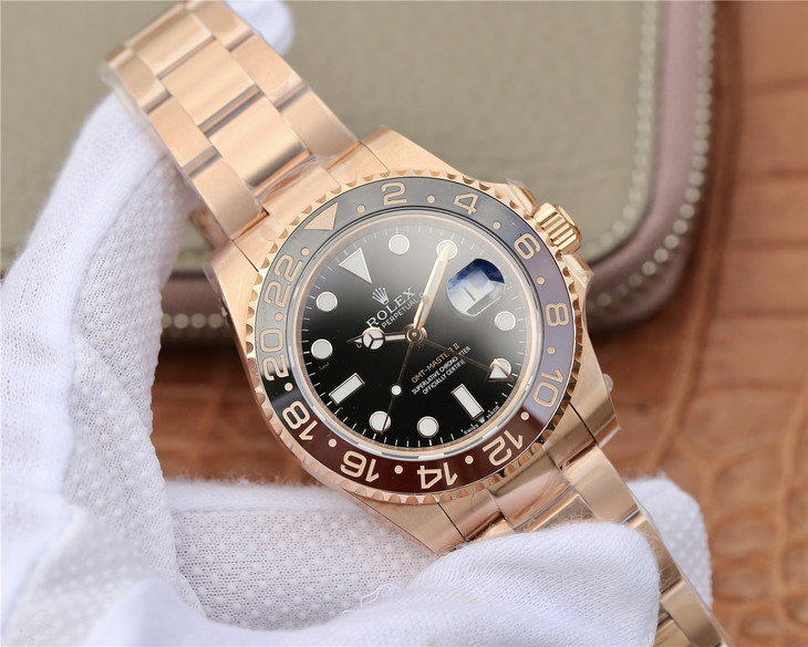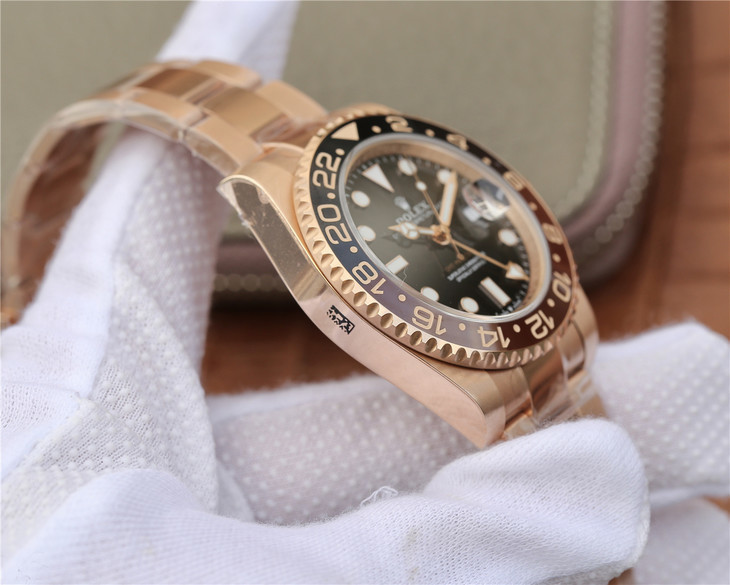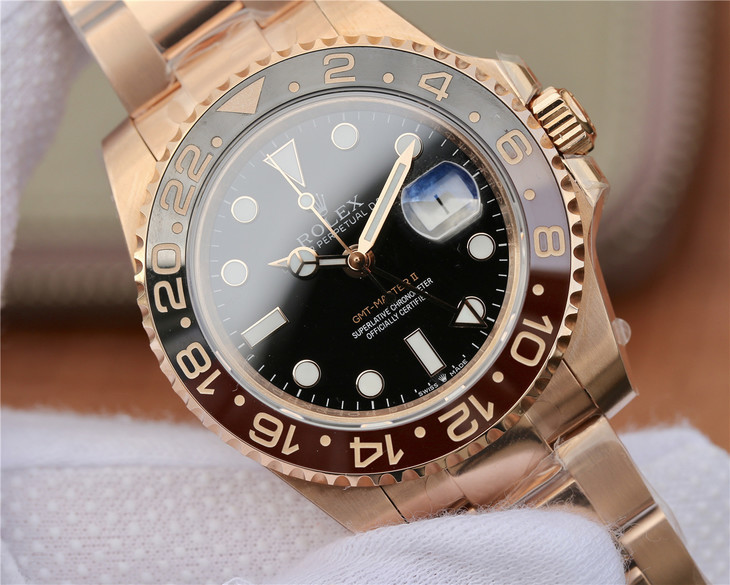 The Rolex GMT-Master 126715 was introduced at BaselWorld 2018. It features a black & brown bezel insert in ceramic, while both case and bracelet are done in Rolex’ proprietary Everose gold alloy.