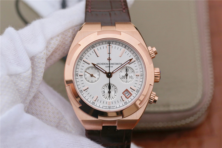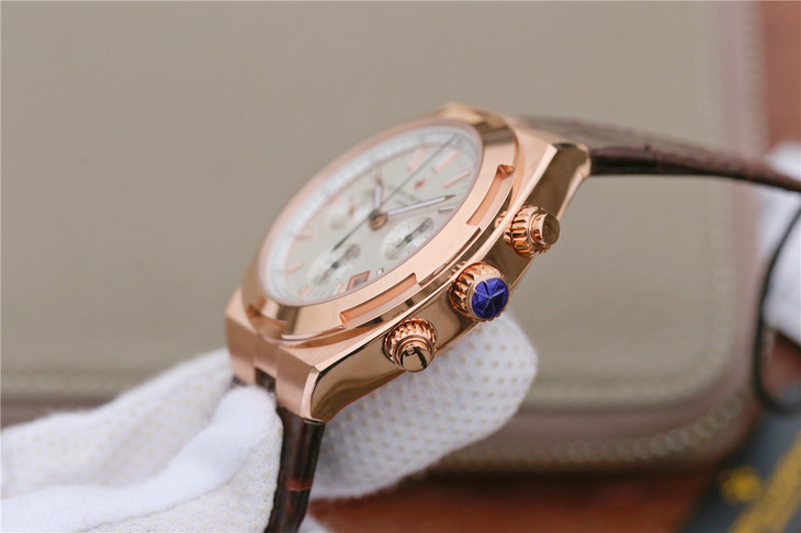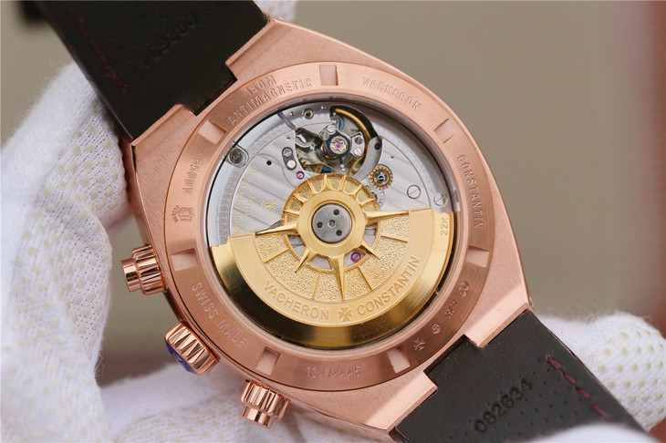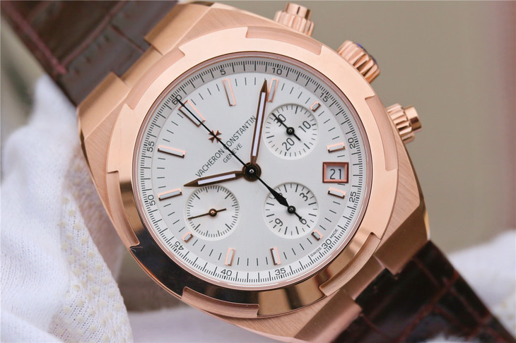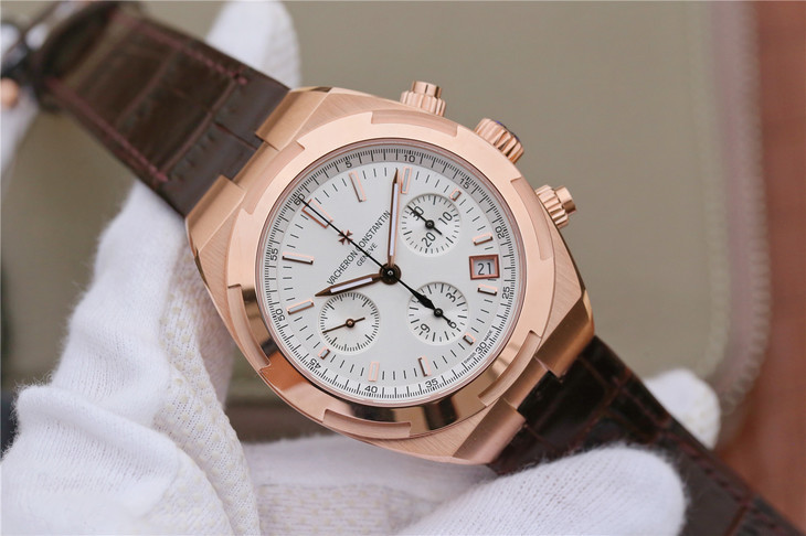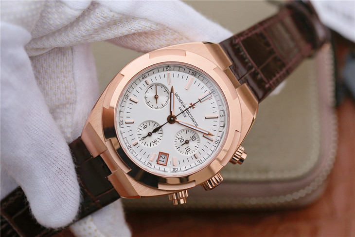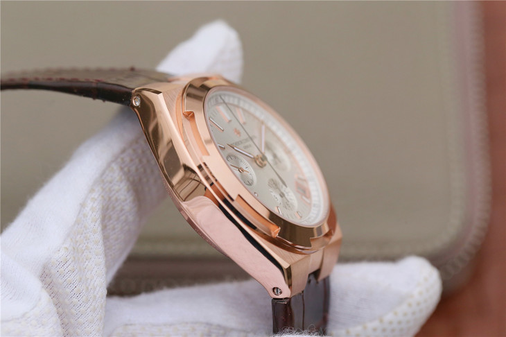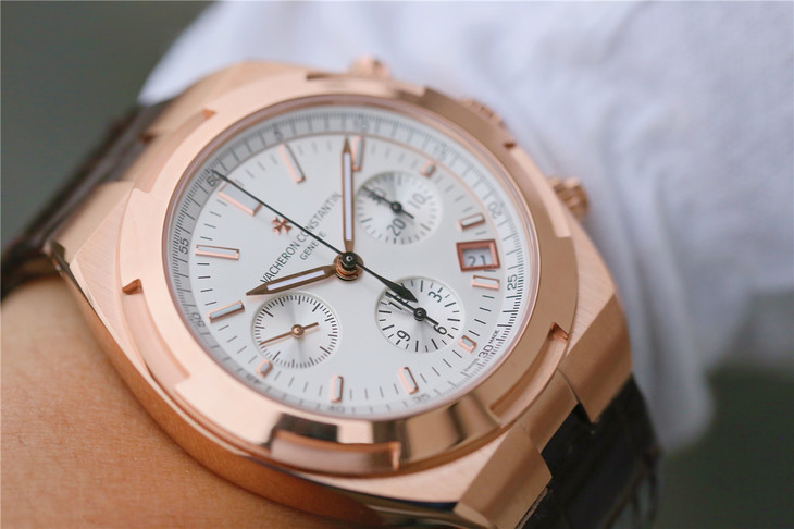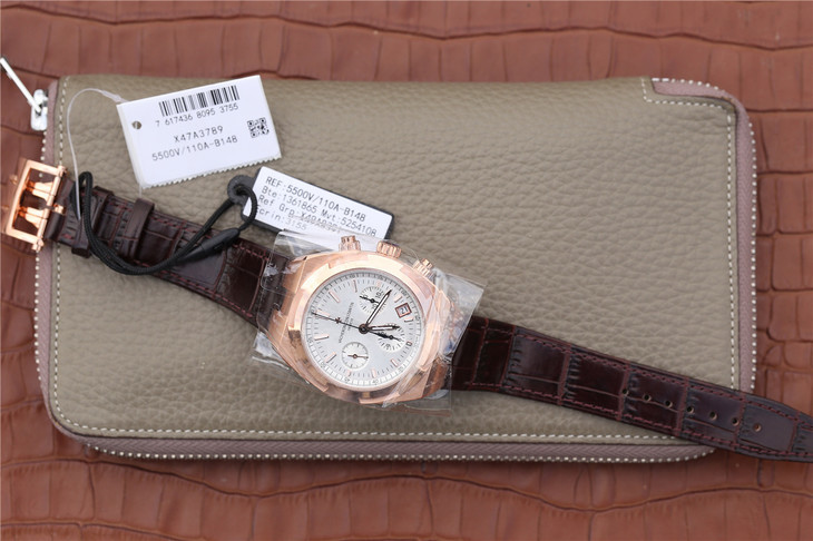 Introduced at SIHH 2016, the Vacheron Constantin Overseas Chronograph watch houses the new column-wheel chronograph Caliber 5200, developed and crafted by Vacheron Constantin, within a 42.5 mm case – the latter now water resistant up to 150 meters. As reference 5500V/000R-B074, it features a pink gold case and a translucent silver-toned lacquered, sunburst satin- finished base with velvet-finished flange, snailed counters 18K gold hour-markers and hours & minutes hands highlighted with white luminescent material. The package includes both an alligator as well as a brown rubber strap.