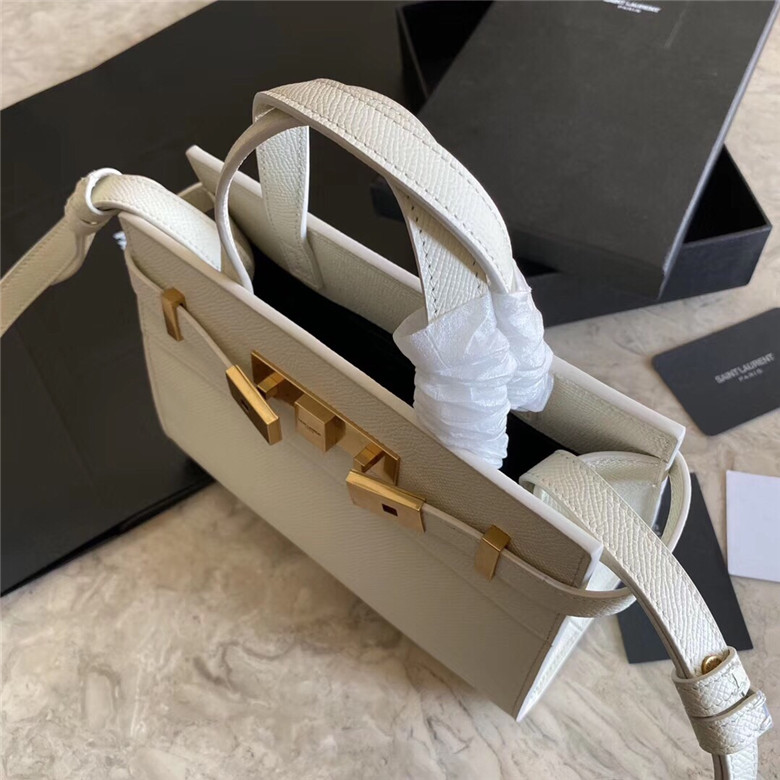 YSL MANHATTAN NANO SHOPPING BAG IN BOX SAINT LAURENT LEATHER WHITE 5937410SX0W9207